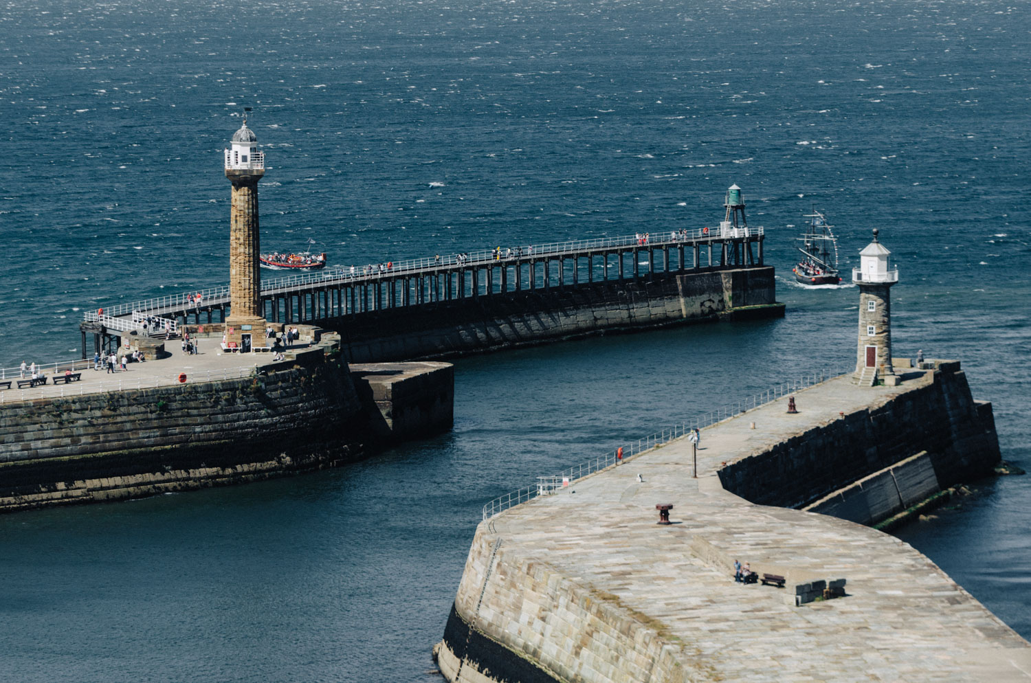 Les magnifiques jetées de Whitby sont une partie essentielle du paysage emblématique de la ville. En toutes saisons — que ce soit sous le froid de l’hiver ou la chaleur de l’été — les jetées sont pleines de vie, encadrant le port au passage des navires. Lors de chacun de nos voyages à Whitby, nous avons pris le temps de nous promener le long de ces jetées qui s’étendent loin dans la mer.