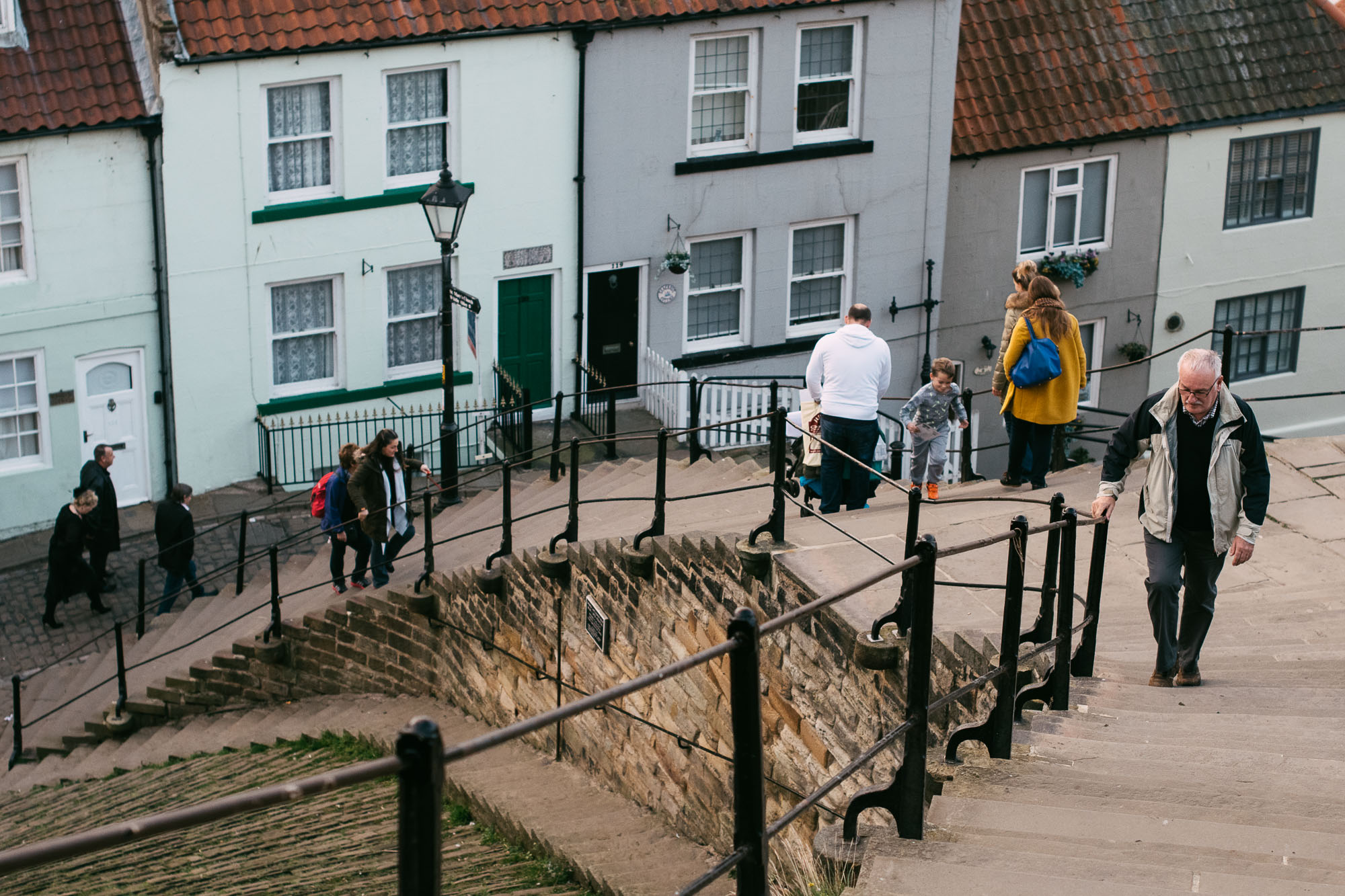 Si vous décidez de visiter l’abbaye de Whitby, vous devrez d’abord passer par un autre lieu de curiosité : les célèbres 199 marches, également connues sous le nom de “Church Stairs”. Monter ces vieilles marches peut être un (petit) défi, mais croyez-moi, la vue du sommet en vaut vraiment la peine. Chaque marche offre une vue magnifique sur les toits rouges, les rues sinueuses de Whitby, et les belles eaux de la mer du Nord.