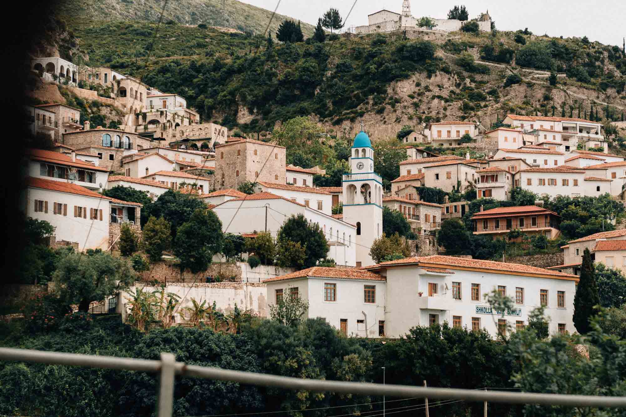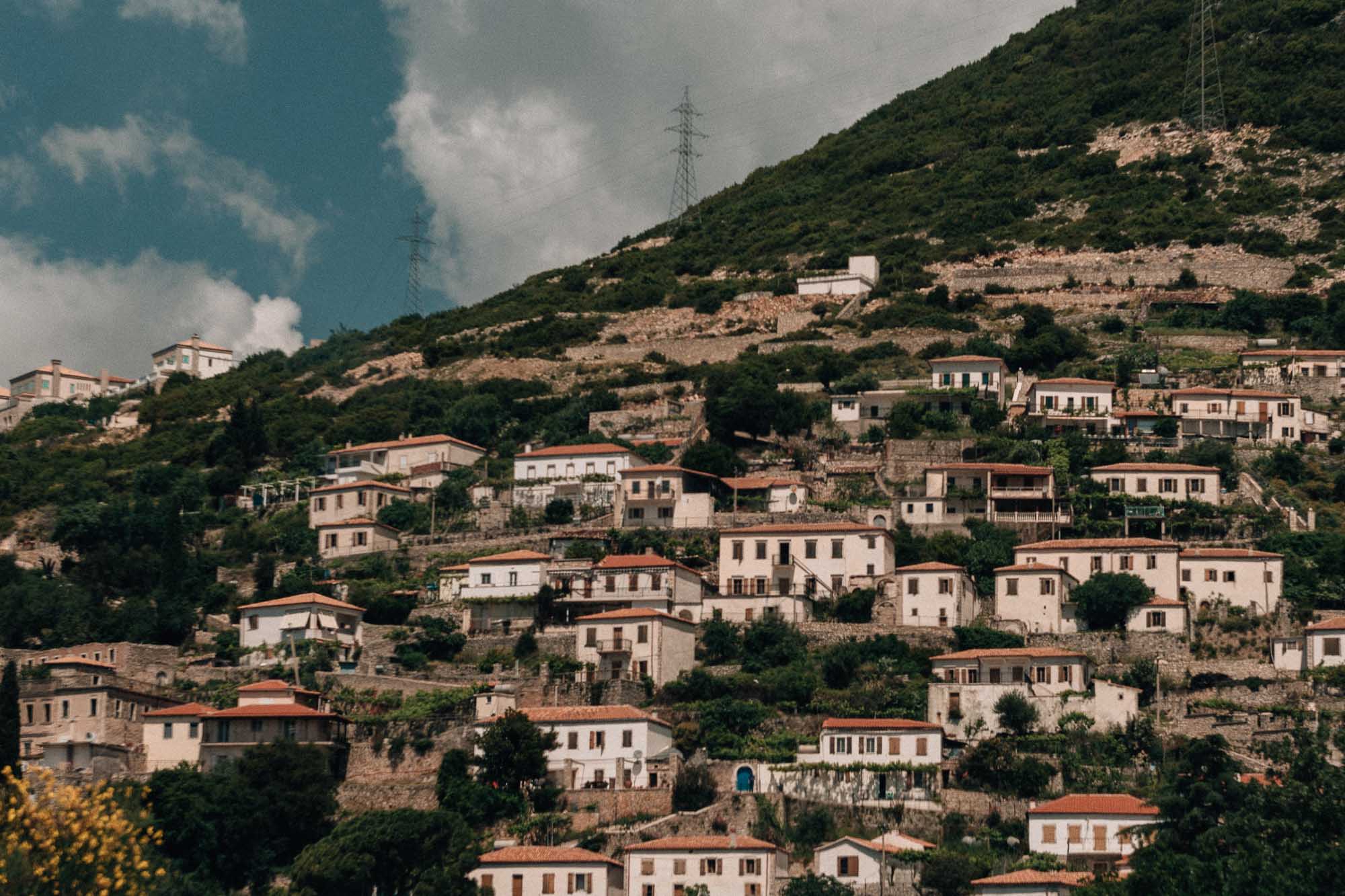 Sur le chemin de notre prochaine destination, nous avons traversé le pittoresque village de Vuno, qui m’a fait penser à une version balnéaire de Berat. Avec ses maisons blanches carrées et ses innombrables fenêtres, la ressemblance était frappante. Malheureusement, nous n’avons pas eu le temps de nous arrêter et de l’explorer davantage — la frustration du planning temps serré ! Eh oui, même après trois semaines dans le pays, il n’y avait toujours pas assez de temps.