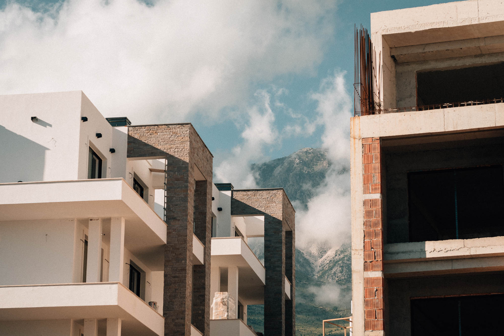 En ce qui concerne les sentiments partagés. Après une journée aussi chargée, nous avons dû faire face à l’un des premiers inconvénients d’une destination en pleine ascension touristique. Trouver un logement à Ksamil a été notre premier défi. Bon, ce n’était pas vraiment trouver un logement le problème—c’était de trouver quelque chose qui ne soit pas dans un hôtel à moitié construit, avec des lits identiques dans des chambres identiques. Dans notre premier article, j’avais partagé notre déception et, honnêtement, notre crainte en voyant un immense chantier le long de la côte, avec des hôtels surgissant comme des champignons. Ksamil était l’épicentre de cette frénésie. Le lendemain matin, nous avons exploré quelques plages locales, seulement pour ressentir une profonde tristesse en voyant ces beaux endroits se transformer en une industrie balnéaire frénétique. Si seulement la qualité était au rendez-vous—mais ce n’est pas encore le cas. Les prix, cependant, se sont déjà alignés sur la demande croissante.