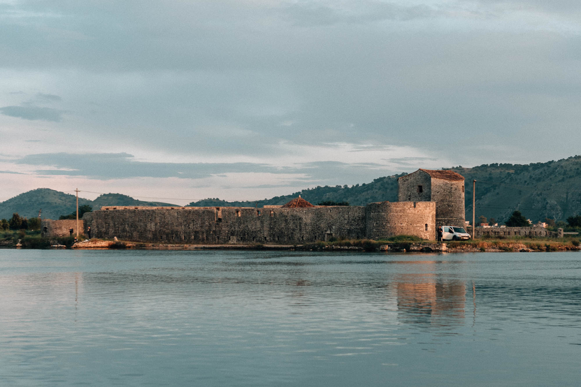 Après avoir visité le Blue Eye, nous avons traversé Saranda en direction de Butrint. À ce stade, nous étions à la fois saturés et fatigués, avec des sentiments partagés sur tout ce que nous étions en train de découvrir, mais notre objectif pour la journée n’a pas encore été atteint : le Parc National de Butrint. Il se faisait tard, le temps était incertain, et en voyant le prix d’entrée (10 € par personne), nous avons hésité. Étions-nous vraiment intéressés par un autre parc archéologique si proche de l’heure de fermeture ? Avec le recul, la réponse est clairement OUI. Je suis tellement contente que nous n’ayons pas cédé à nos doutes, car Butrint est incroyable. Parcourir ce parc est comme dévoiler des couches d’histoire—les Grecs, les Romains, les Byzantins—tous ont laissé leur empreinte sur cette petite péninsule. Le site en soi est magnifique, et vaut le détour rien que pour sa beauté naturelle, avec une vue sur l’île grecque de Corfou comme un bonus ! Nous avons absolument adoré le cadre et le musée, de plus on a eu de la chance d’avoir le parc pour nous seuls (ou presque).