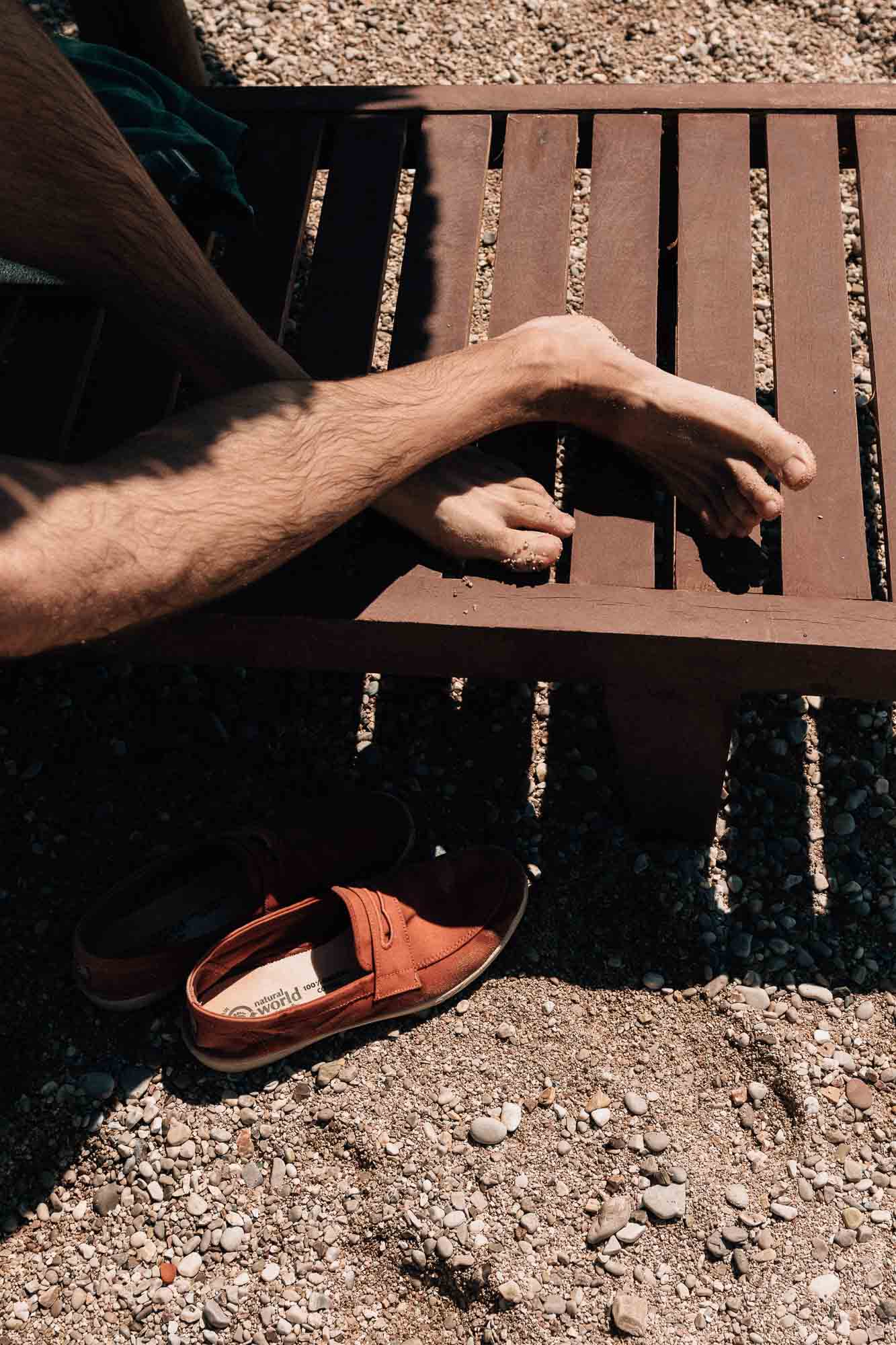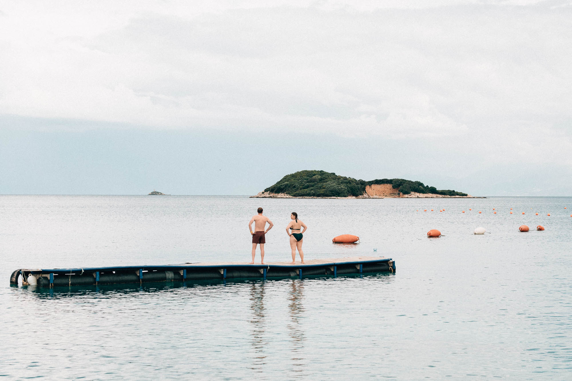 Le lendemain marquait le début officiel de notre moment “de qualité” sur la Riviera albanaise. Le soleil était revenu, et nous avons enfin ressenti l’envie de plonger dans ces eaux bleues. Impatients de profiter de la plage, nous ne voulions pas chercher l’endroit “parfait”, alors nous nous sommes dirigés vers la plage la plus proche—la plage de Gonia. Bien que ce fût une plage assez ordinaire avec les chaises longues et parasols indispensables, ce moment était délicieux. Il n’y avait que quelques personnes, donc nous avons pu profiter de ce coin de paradis à fond. Pur bonheur !