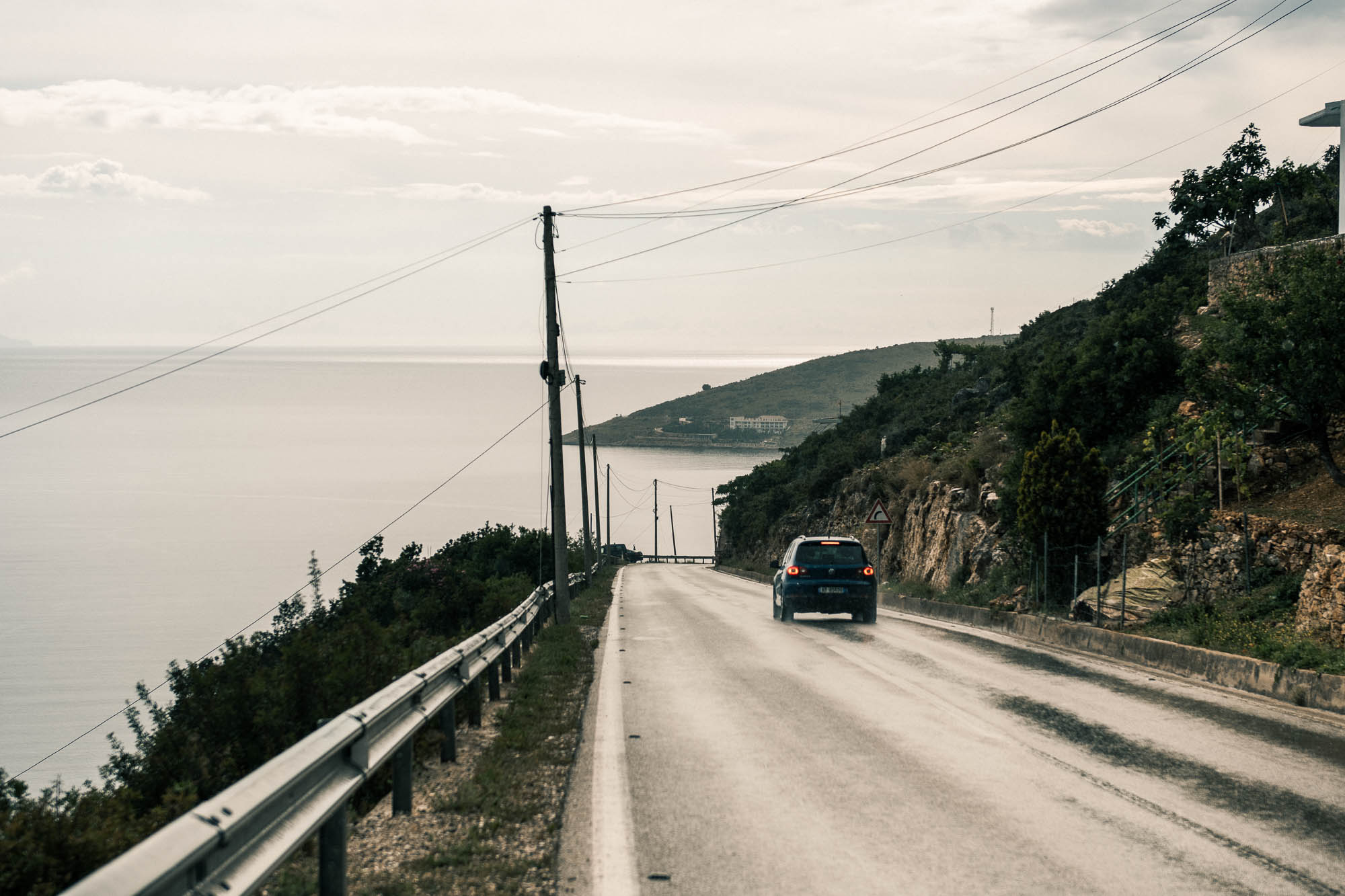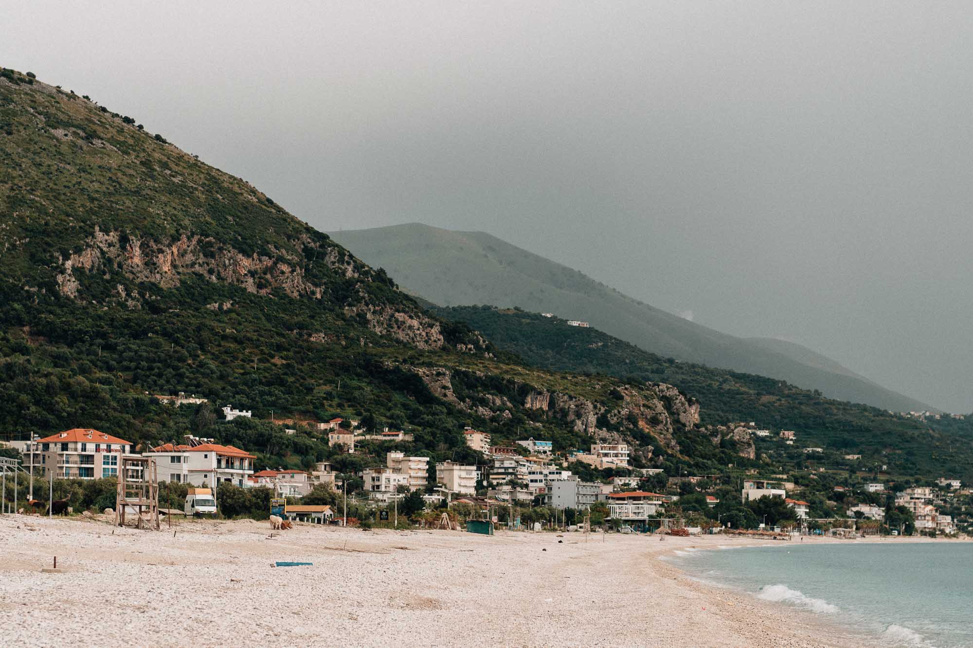 Nous ne sommes pas restés longtemps à Ksamil et avons poursuivi notre voyage le long de la côte. Nous avions plusieurs arrêts en tête, mais la météo n’était pas de notre côté. Le ciel couvert, le vent frais, et, à cause de quelques mésaventures et changements de planning, nous n’avions tout simplement pas le temps d’en faire plus. Si seulement nous n’avions pas perdu deux jours à cause de problèmes de véhicule, cela aurait suffi pour passer plus de temps à la plage.