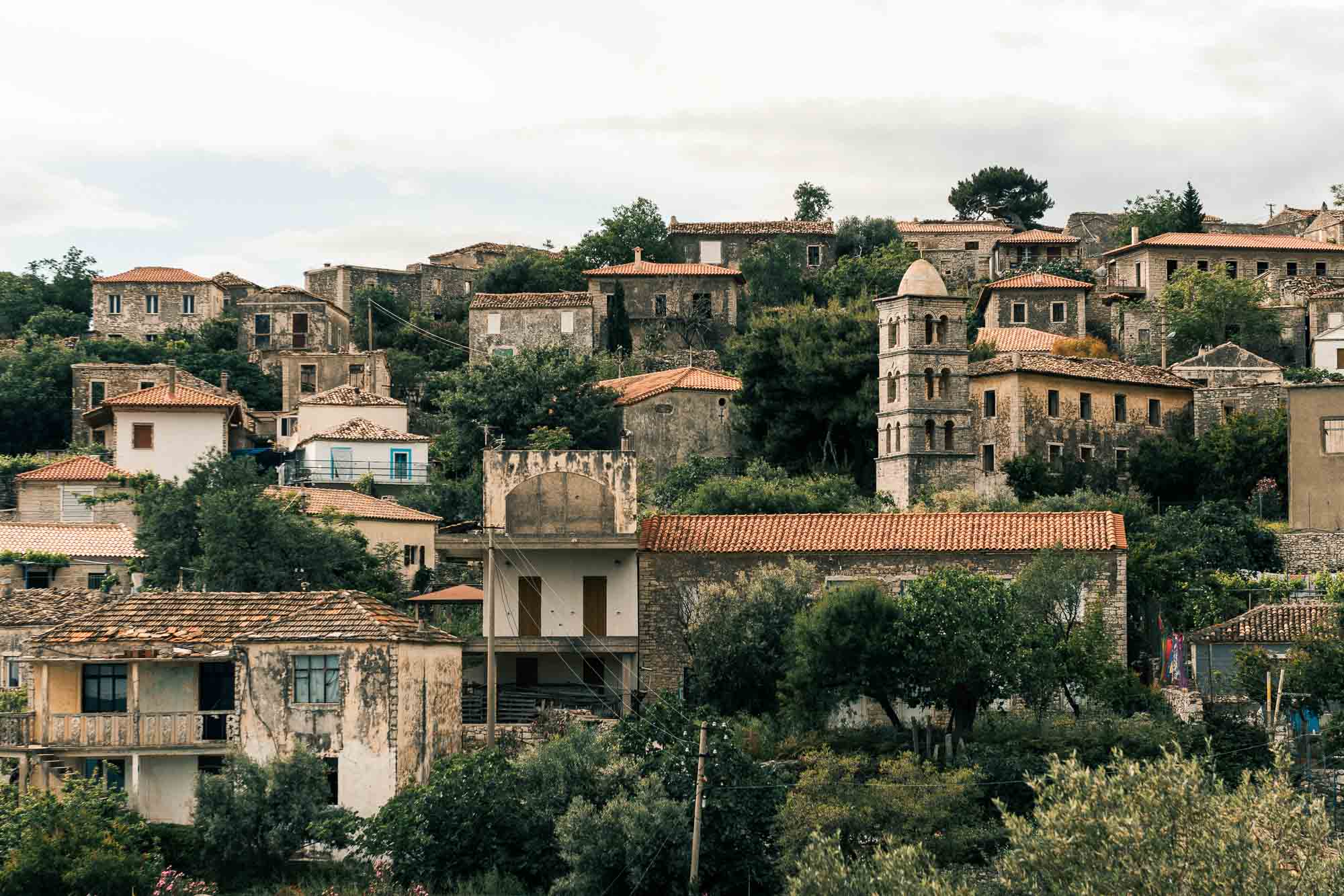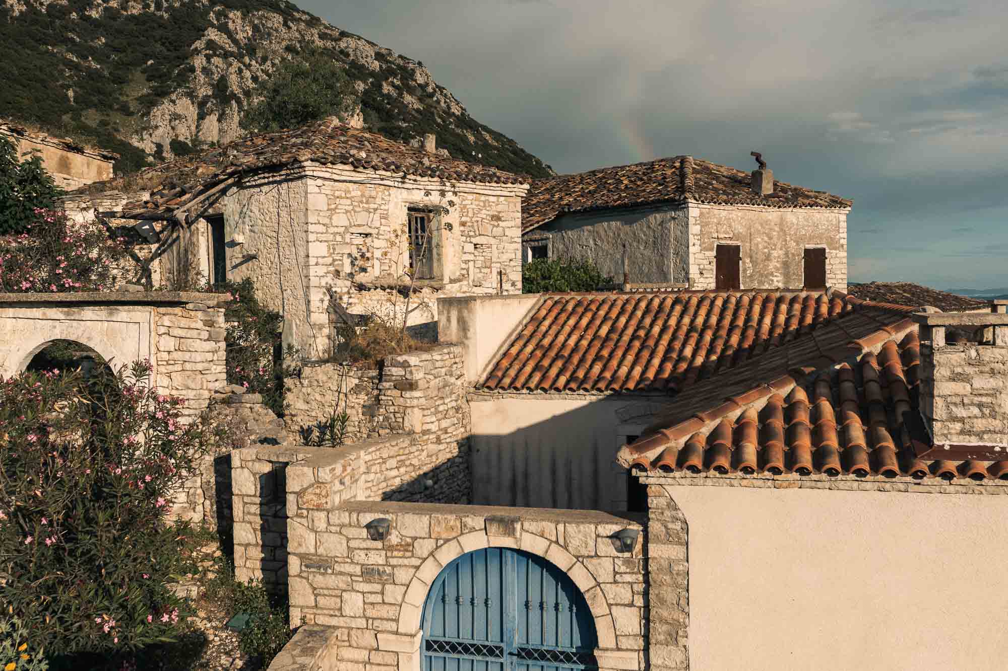 Un petit village appelé Qeparo est venu contrebalancer cette tristesse. C’est le joyau charmant auquel je faisais référence—car il a su conserver son authenticité. Pas de bâtiments de l’ère communiste, pas d’hôtels identiques n’y ont pris racine. En revanche, le village n’est pas très bien préservé, et selon notre guide, ces belles maisons (bien que quelque peu délabrées) peuvent être achetées pour une bouchée de pain. Qeparo ressemble à un village médiéval de montagne au bord de la mer—on avait presque l’impression d’être en Italie ou en Croatie (ou du moins, tel que j’imagine la Croatie), mais non, nous étions toujours en Albanie ! Cet endroit est une recommandation ferme de notre part. Contrairement à Himarë ou Saranda, Qeparo a une âme. La vue sur les collines vertes vaut le détour aussi.