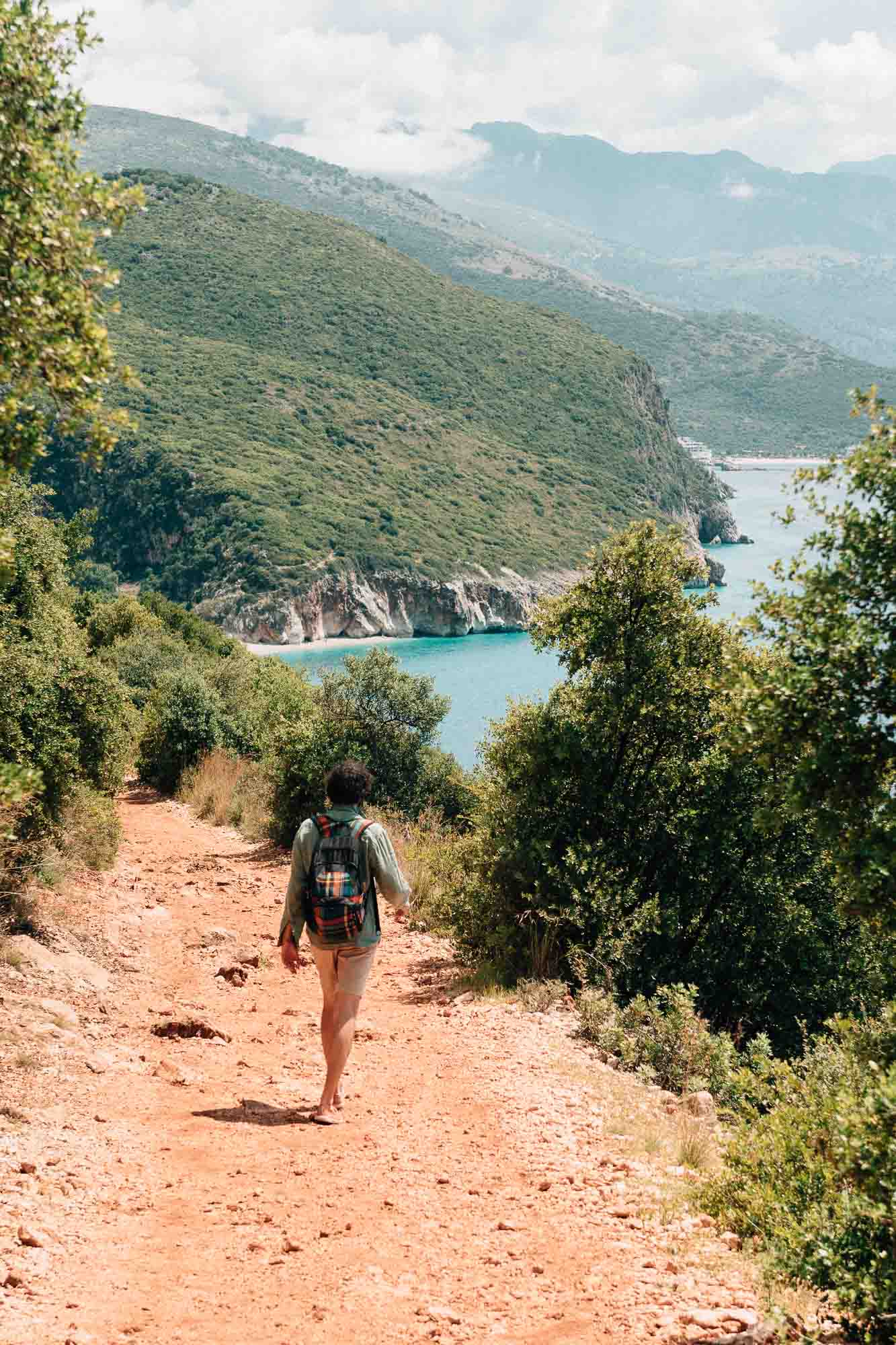 Et voici le point culminant de notre expérience sur la Riviera albanaise et notre spot préféré : Dhermi. Tout d’abord, la ville elle-même est très jolie, mais, comme à Vuno, nous n’avons pas eu le temps de l’explorer comme elle le mérite. Nous nous sommes arrêtés pour déjeuner chez Luciano (leurs fruits de mer sont dé-li-cieux) avant de nous diriger directement vers la plage. Les mêmes chantiers de construction qui semblent être omniprésents, donnaient à l’endroit une ambiance de ville fantôme. Mais ensuite, nous avons marché un peu plus loin jusqu’aux criques et découvert le lieu sauvage et magnifique que nous espérions trouver sur la côte albanaise.