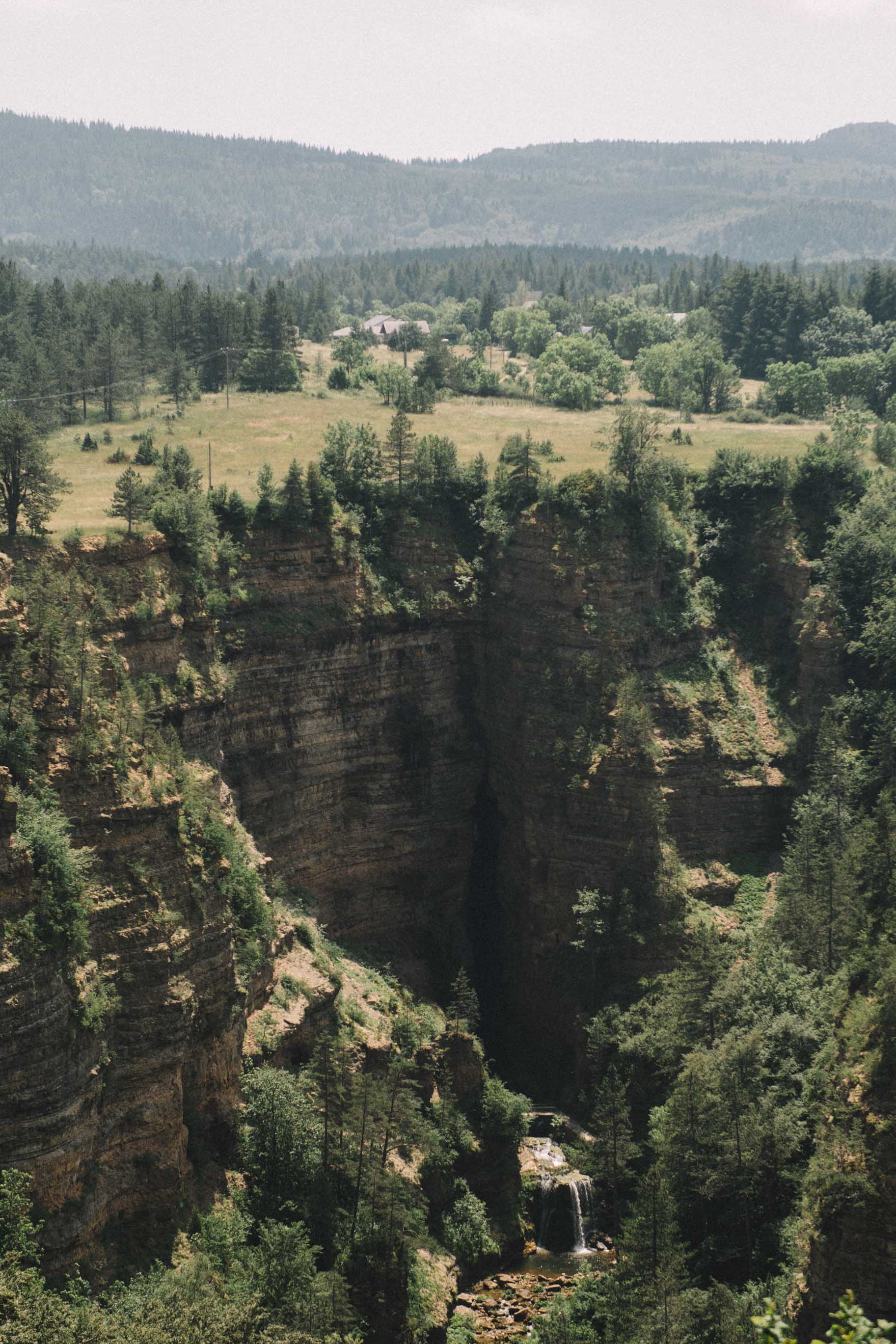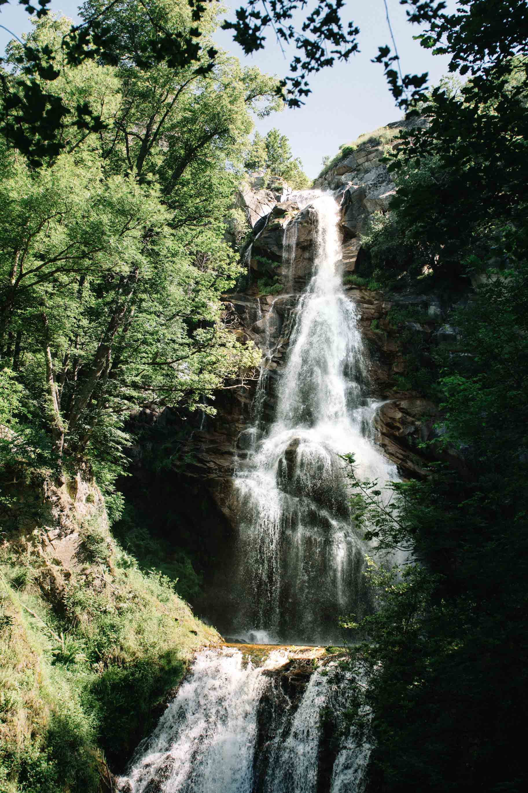 Notre première tâche matinale fut la randonnée jusqu’à la cascade de Runes. Elle n’a rien en commun avec la cascade que nous avons vue en Aubrac, mais son emplacement caché au cœur de la nature lui donnait l’impression d’être sorti d’un conte de fées. Malheureusement, même si nous sommes arrivés assez tôt, nous n’avons pas eu un moment seuls avec la cascade, donc probablement un départ encore plus tôt aurait été mieux. Je souligne l’importance de porter les bonnes chaussures pour cette randonnée – bien que courte et facile, elle comporte quelques passages raides qui pourraient être dangereux sans des chaussures de rando.