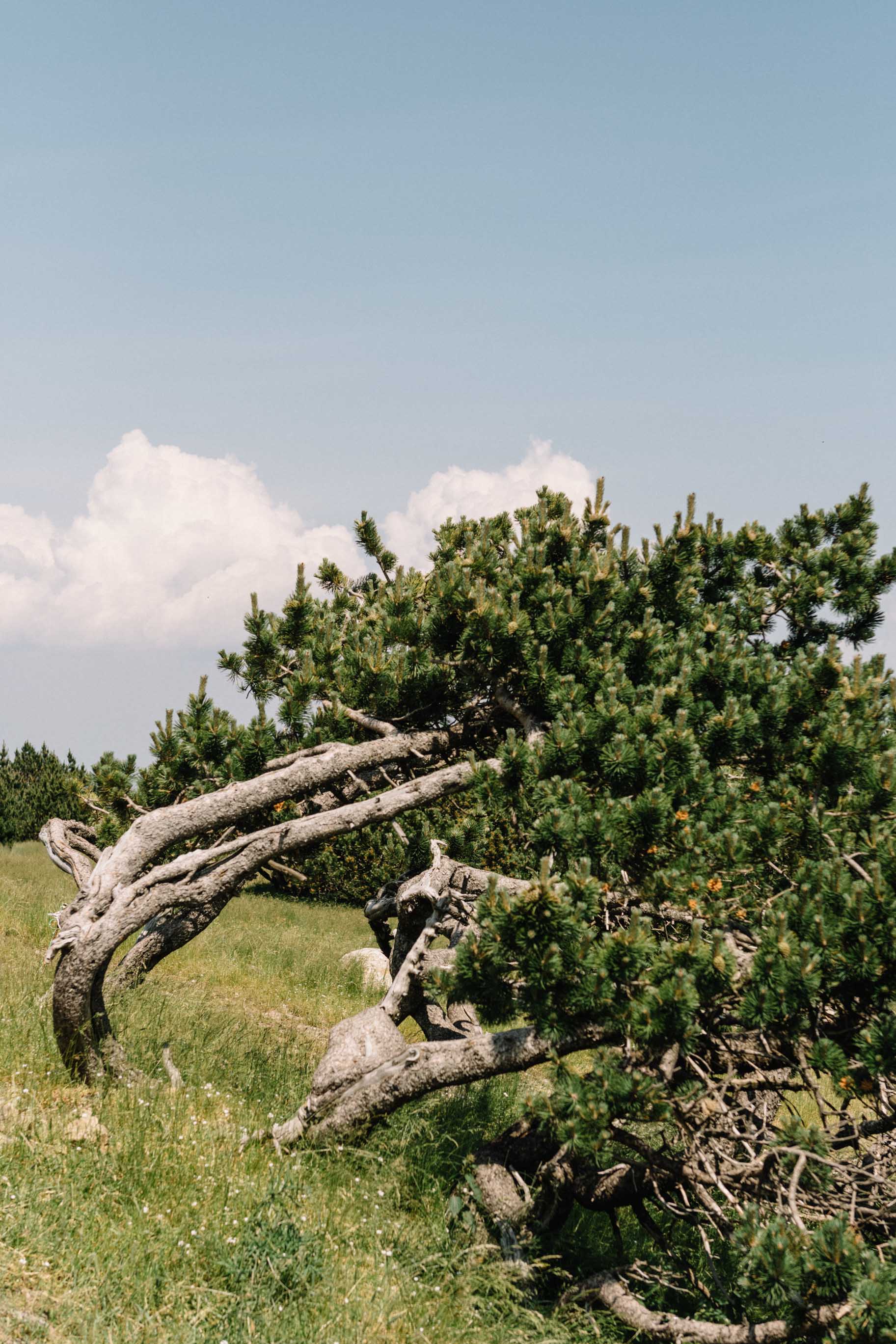 Fatigués et heureux, nous avons d’abord mangé notre deuxième (et dernier) aligot, puis avons conduit jusqu’au Mont Aigoual – un sommet à 1 565 mètres d’altitude qui sert également de station météorologique. Les arbres tordus sous les vents constants de la région nous ont rappelés Majorque et l’un des phares que nous y avons visités – le dernier endroit auquel je m’attendais à penser lors de ce voyage.