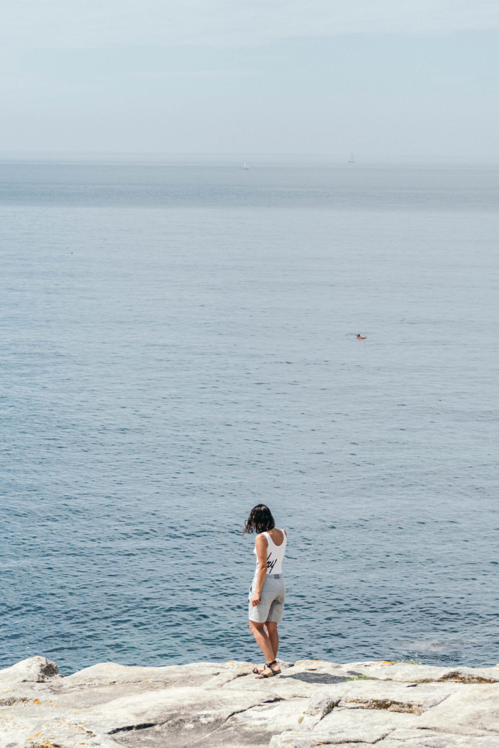 Le lendemain, nous avons loué deux vélos et avons roulé depuis Carnac en direction de Quiberon. C’est une petite presqu’île avec trop de beauté pour un si petit territoire – c’en était presque scandaleux ! Partir tôt était une excellente idée car nous devions faire une pause pour nager à chaque plage et grimper sur chaque falaise sur notre chemin, sans oublier un grand repas de fruits de mer – bien mérité ! Nous avons parcouru 56 kilomètres à vélo, ce qui correspond au numéro du département Morbihan. C’est une chose idiote, mais cette petite coïncidence m’a rendue très joyeuse. 😀
