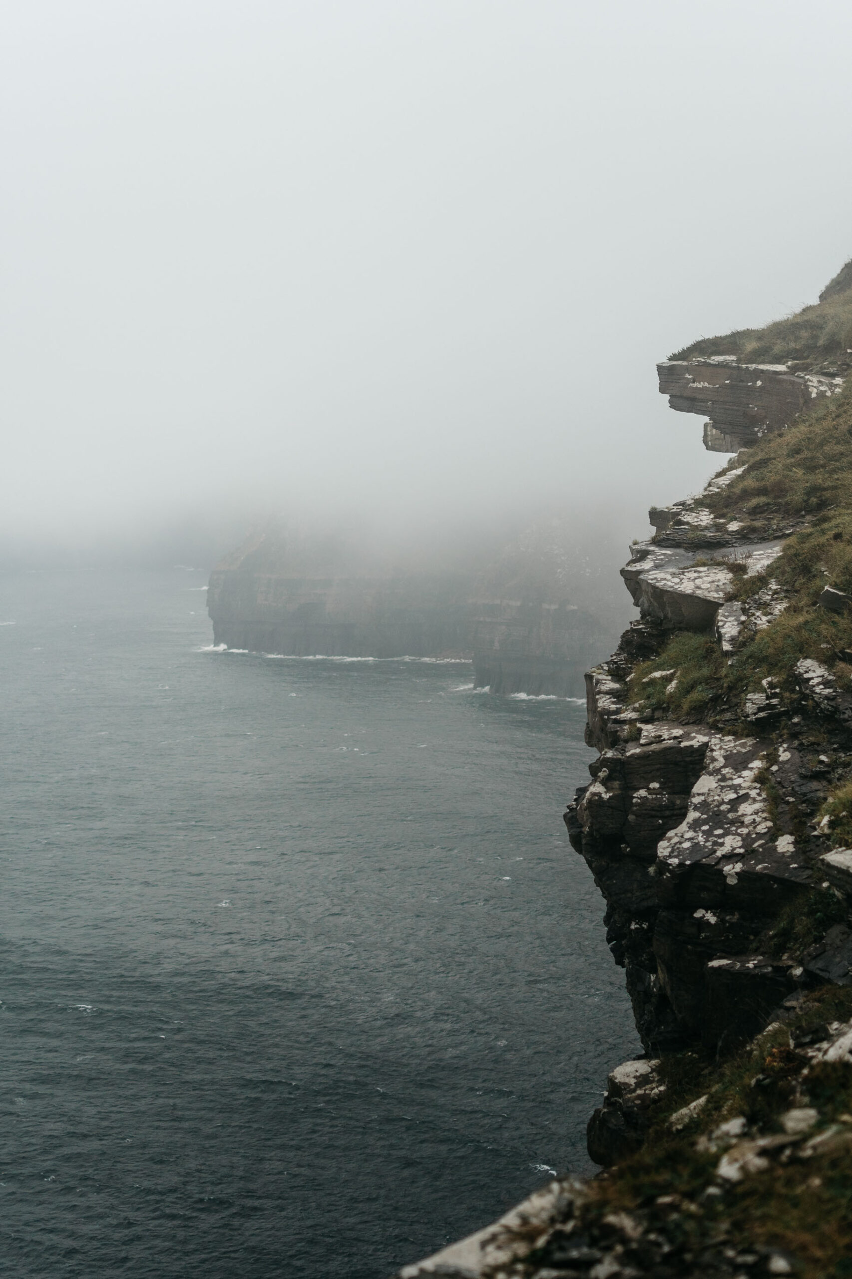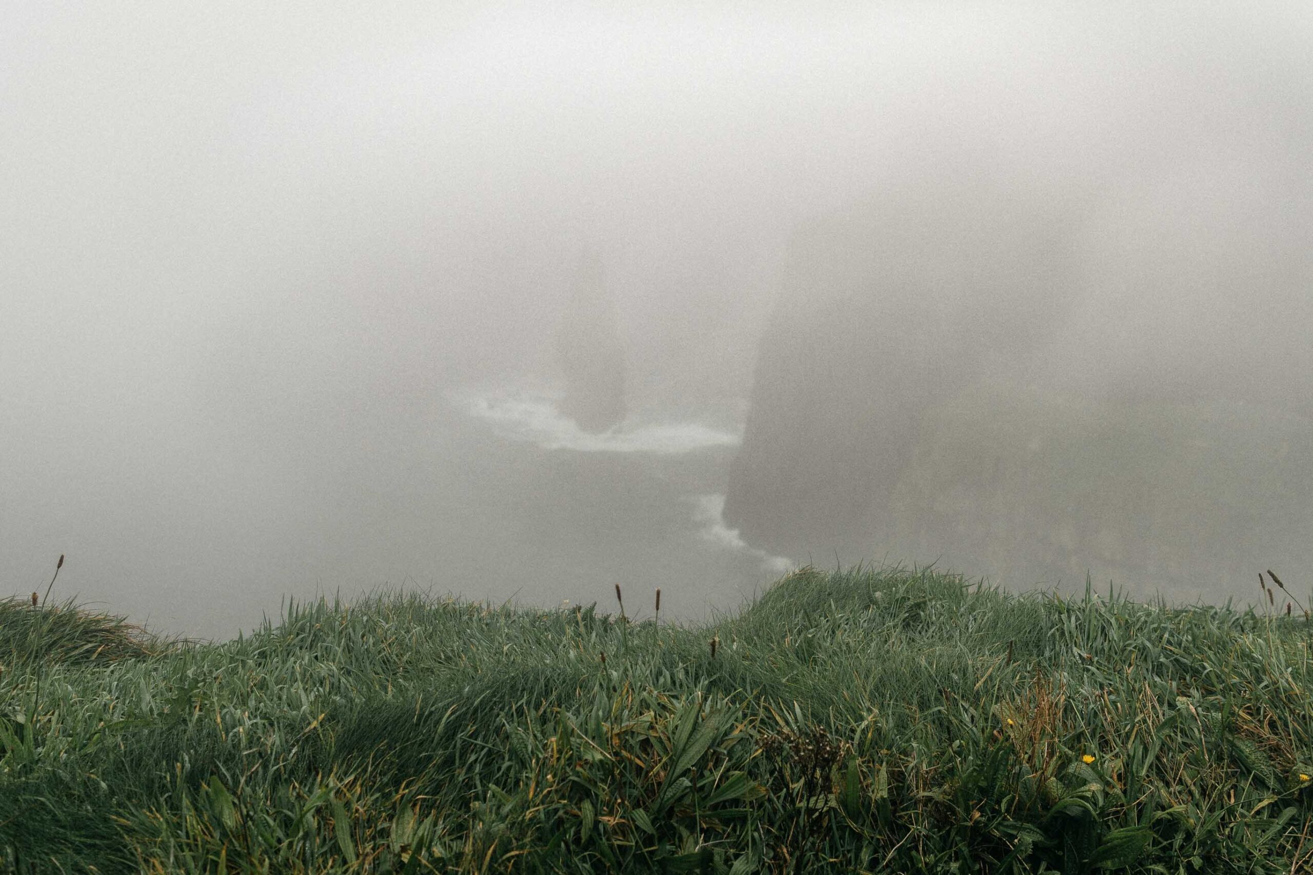 Off we went. Under the drizzle and in the fog, we walked for five kilometers until Moher Tower at Hag’s Head. Zero visibility, 100% humidity, but there was something very meditative about this whole walk. Sometimes the fog would thin for two or three minutes, and we could see the outlines of the cliffs, but it didn’t last for long anyway. Somehow, I was still very serene about this situation, although I could understand the despair of the complaining passers-by.