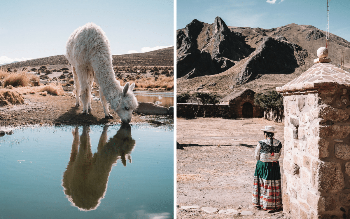 Hugging llamas in Peru