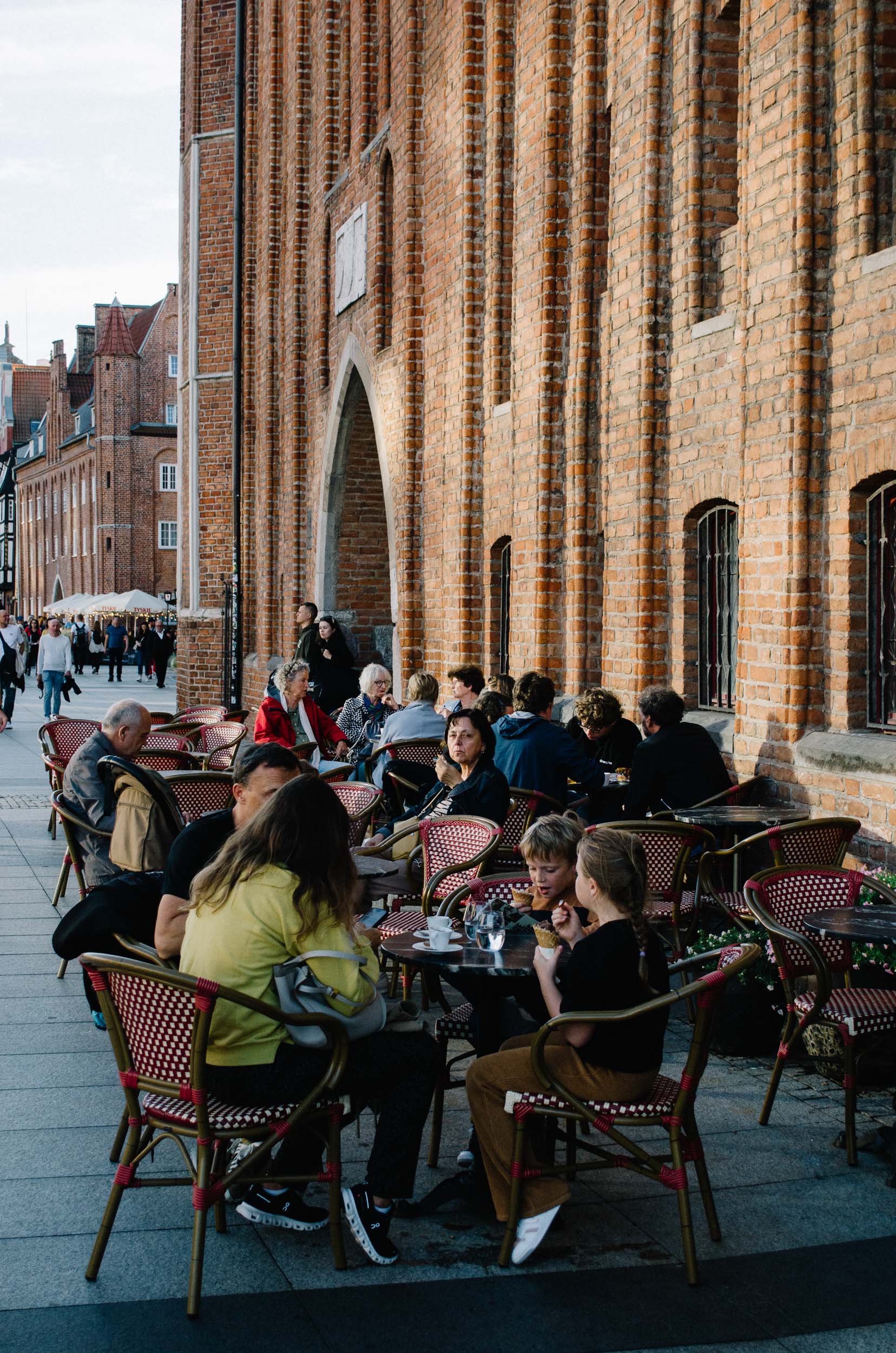 J’avais une image très précise de Gdańsk en tête : des rangées de maisons en pain d’épices, un port, et un ciel du Nord sévère se reflétant mélancoliquement dans les eaux de la mer Baltique. La réalité, cependant, ne correspondait pas à cette fantaisie. Tout d’abord, rien n’était sévère — en fait, les journées étaient chaudes et ensoleillées. Et j’ai rapidement découvert que Gdańsk n’est pas exactement « sur » la mer comme je l’imaginais ; on ne voit pas la mer depuis le centre-ville, même si la ville dans son ensemble est bien côtière. Donc pas d’horizon mélancolique pour moi ! En revanche, les maisons en pain d’épices étaient bel et bien là.