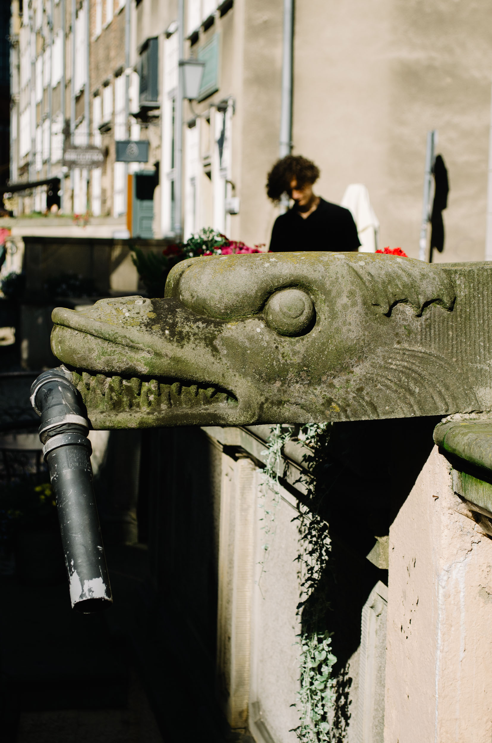 La Vieille Ville de Gdańsk est animée et vibrante, pleine de cafés, de boutiques et de restaurants de toutes tailles et de tous styles. Mais, comme toujours, dès que l’on quitte les grandes artères (comme la rue Długa et le Długi Targ), le calme revient. Ma rue préférée, de loin, est Mariacka Ulica : elle est cozy et belle, les marchands d’ambre lui ajoutent une atmosphère un peu à l’ancienne. La rue est aussi décorée de gargouilles en pierre — une touche gothique sympathique et inattendue.