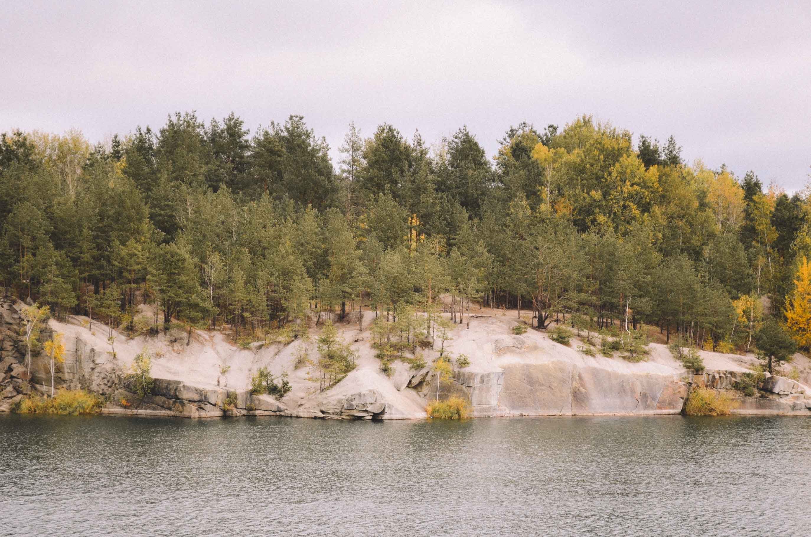 Avant la fin de l’URSS, il y avait ici un centre industriel assez important avec de grandes carrières de granit, le paysage est donc en partie formé par cette activité. Aujourd’hui, c’est un espace vide avec de belles falaises et ce que les habitants appellent des “canyons”.